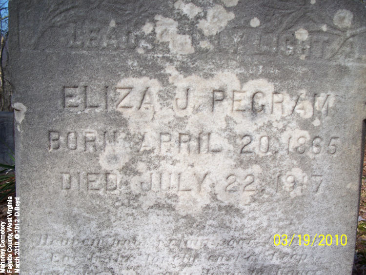 Pegram | Eliza J. | 20 April 1866 | 22 July 1917 |