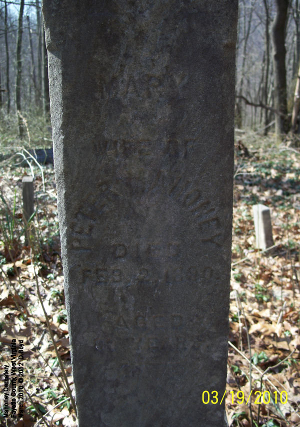 Directions: Exit I-77 at Mossy exit and go North about 2 tenths of a mile and turn right on Rt 15 towards Dothan, WV. Travel approximately 6.2 miles through Dothan heading to Carlisle, WV, and Toney Fork Road is on the left. The cemetery is directly behind the 2 story block home at the intersection and looks like the owners drive. Ask permission from the owner (Charles Burk) and it is less than 100 yards behind his house up an old road. In fact the entrance to that East End of Toney Fork Road is in an area called Scarbro, WV. Toney Fork Road is a dirt road that goes from Dothan to Scarbro on the North side of Rt 15. |