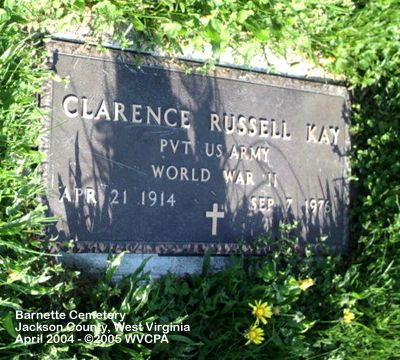 Kay | Clarence Russell | 21 April 1914 | 7 September 1976 | "PVT US ARMY WORLD WAR II" |