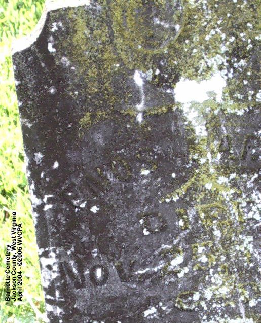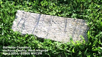 Comments: | Dates in Red are not inscribed on the tombstone and have either been calculated based on death date or are as a result of research on the individual. There are a number of graves with no markers in this cemetery. WVCPA will be visiting this cemetery again in the future to work on plot diagrams and do foil rubbings on the more difficult to read stones in hopes of positively identifying them. |