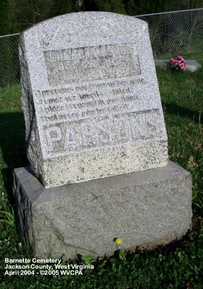 of T.I.C. & E. Parsons" "Aged 24Y _M _D" [Brothers - shared stone] "Gone So Soon" "Son of T.I.C. & E. Parsons" "Aged 1 yr 4 mo 3 ds" |