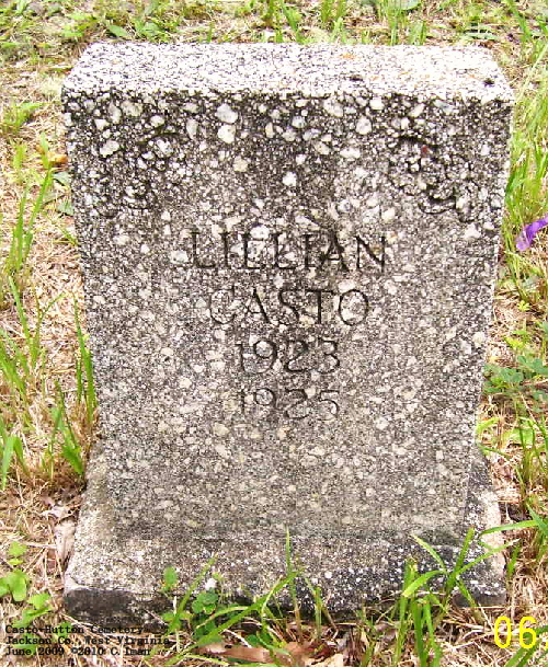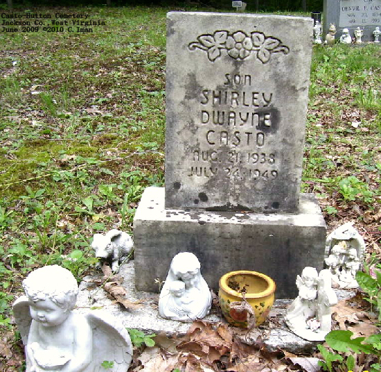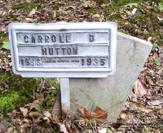 Kentuck and Belgrove. Driving directions: From Charleston travel I-77 N to Kenna exit (exit 124). Turn right on Kentuck Road (CR-19), travel approximately 3.6 miles, the road (CR-19) appears to end at the intersection, follow the road going to the left for approximately .1 mile. Turn left onto White Pine Road (CR 34/18). Follow White Pine Road for 4.4 miles, at this point you will encounter a small creek crossing, once through the small creek travel .1 mile, turn left through the creek, follow this road for approximately .4 mile. It is necessary to cross through the creek three additional times before reaching the road to the cemetery. Park near the second house. The path to the cemetery is slightly below the house, between two Apple Trees. Go approximately 500', the road/path turns sharply left and the road becomes more obvious. Follow road to the top of the hill (approximately 1500'). Best method of access is probably on foot, and during dry periods. Due to the creek crossings, heavy rains may make the road impassable. |