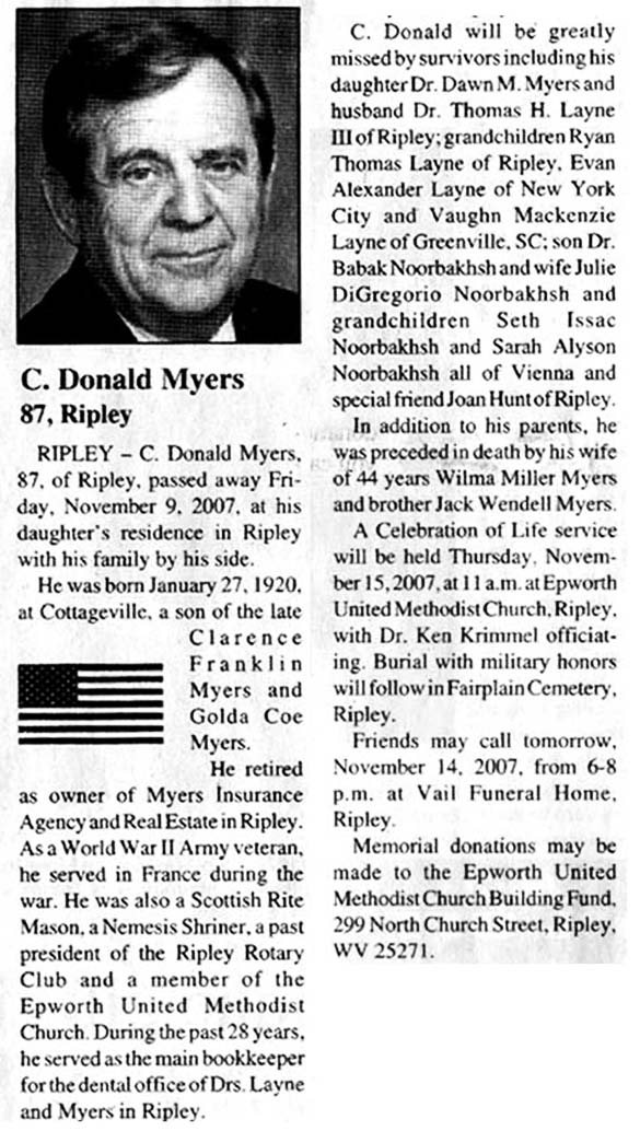 [Son of Clarence Franklin and Golda (Coe) Myers]