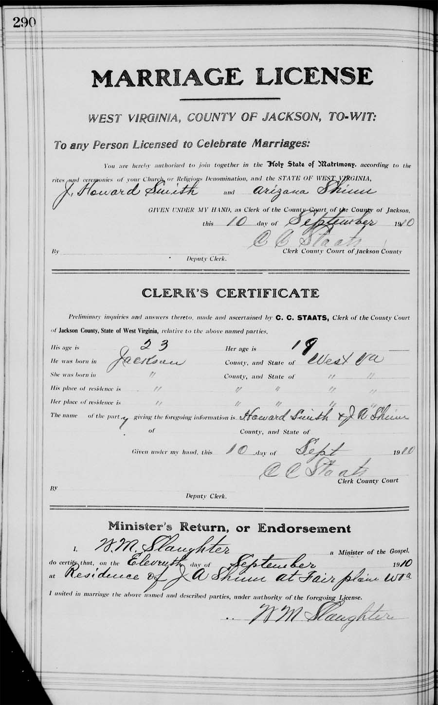 [Married J Howard Smith Sept 11, 1910]