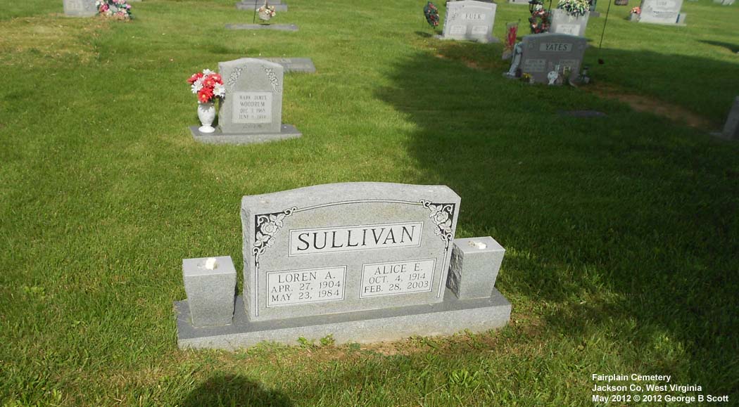 access. From Ripley, go south on I-77 and take Exit 132. Merge right (south) onto Co Rd 21/Charleston Rd and go 0.3 mile. There is a sign there indicating the Cemetery is to the left. Turn slight left (east) onto Cemetery Rd and go 0.1 mile. Turn left onto Cemetery Rd and go 0.1 mile. Cemetery is on left and is divided into six sections by access roads. Cemetery is large (about 1800 graves) and 5