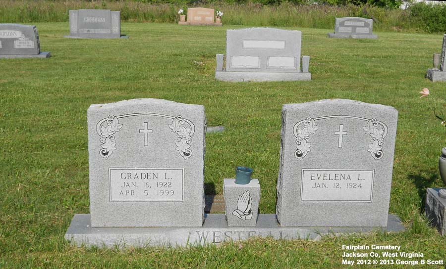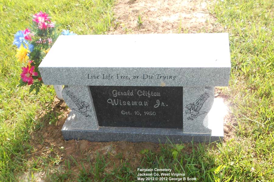 access. From Ripley, go south on I-77 and take Exit 132. Merge right (south) onto Co Rd 21/Charleston Rd and go 0.3 mile. There is a sign there indicating the Cemetery is to the left. Turn slight left (east) onto Cemetery Rd and go 0.1 mile. Turn left onto Cemetery Rd and go 0.1 mile. Cemetery is on left and is divided into six sections by access roads. Cemetery is large (about 1800 graves) and 5