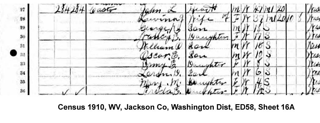 Son of John L and Lavina J Casto]