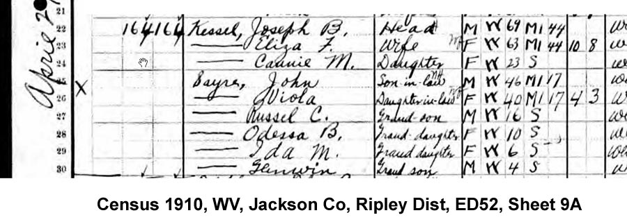 [Wife Viola, children Russell C, Odessa B, Ida M, Glenwin] |