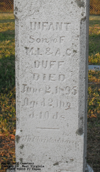 M.L. & A.C. Duff" "Aged 2 Mo. & 10 ds"