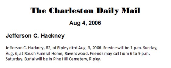 [82 years of age - from his obituary in the Charleston Daily Mail Aug. 4, 2006] |