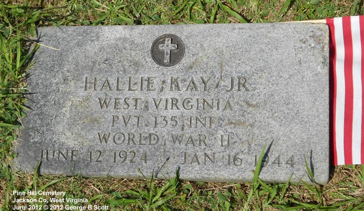 "WEST VIRGINIA" "PVT 135 INF" "WORLD WAR II" [Note spelling on footstone is Hallie Jr, on family stone is Hollie Jr"