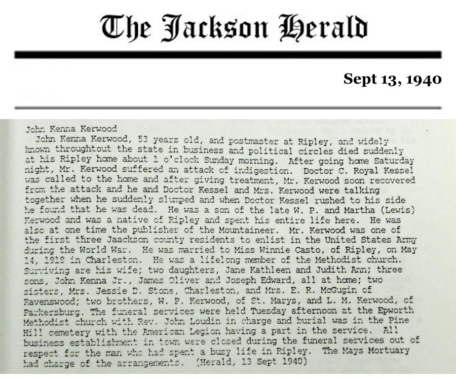 [Son of W.L. and Cora Woodall Kessel, husband of Rayme Morrison Kessel - from his obituary in the Charleston Gazette Dec. 9, 2008]