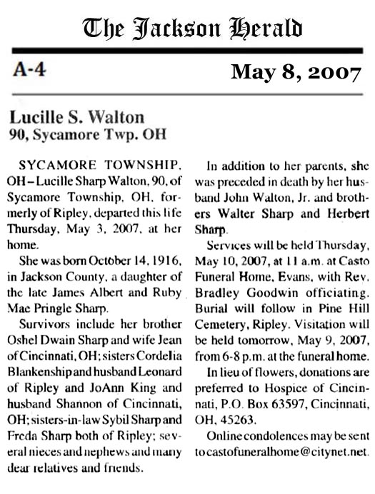 "SISTER, NANNY, AUNT" [90 years of age - from her obituary in the Jackson Herald May 8, 2007]
