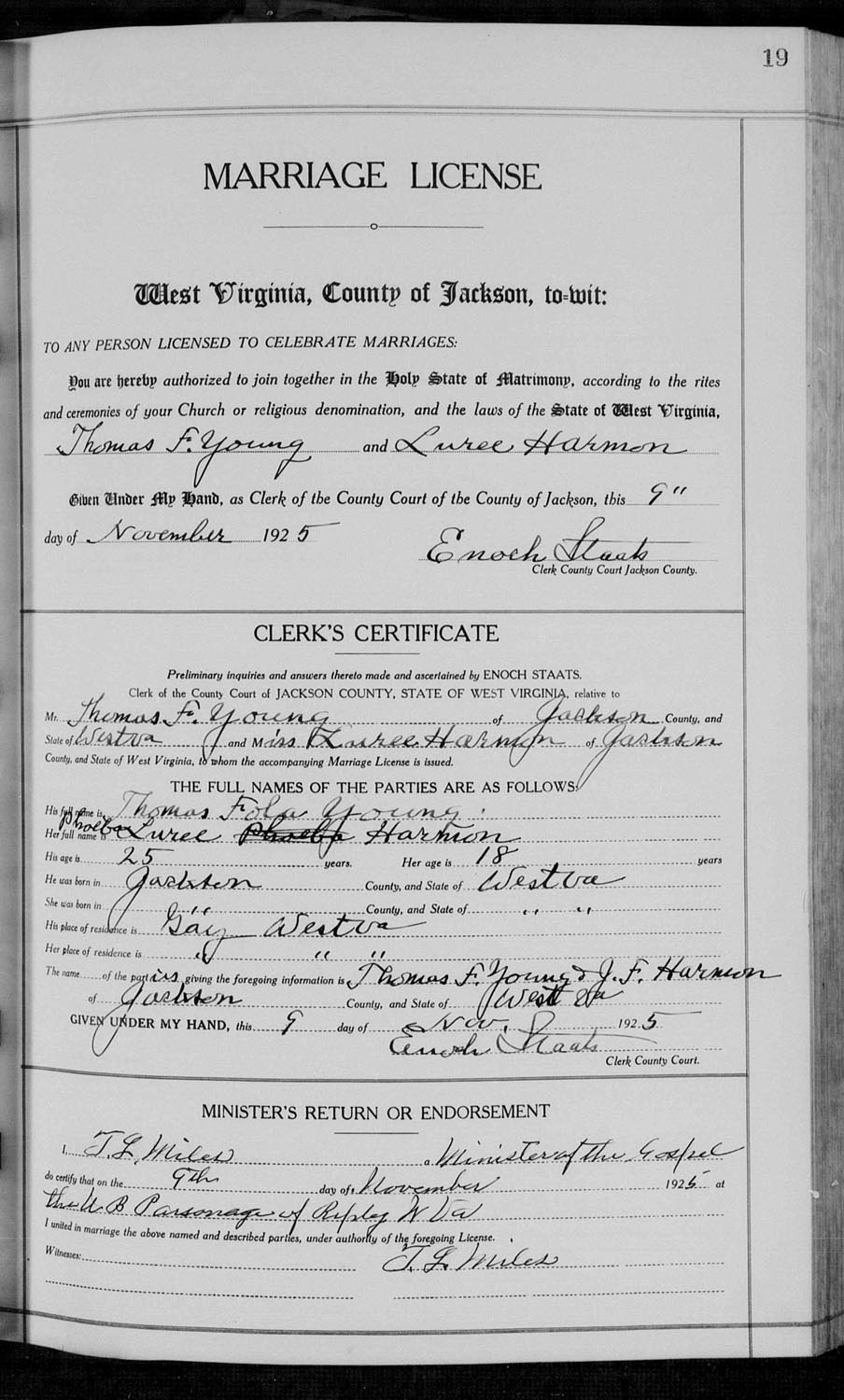 [Married Nov 9, 1925 to Phoebe Harmon]