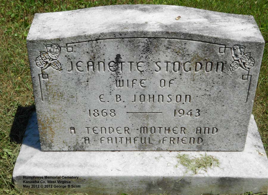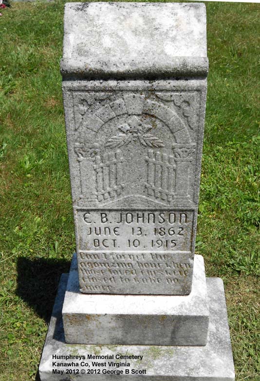 "WIFE OF E B JOHNSON" "A TENDER MOTHER AND A FAITHFUL FRIEND" |
