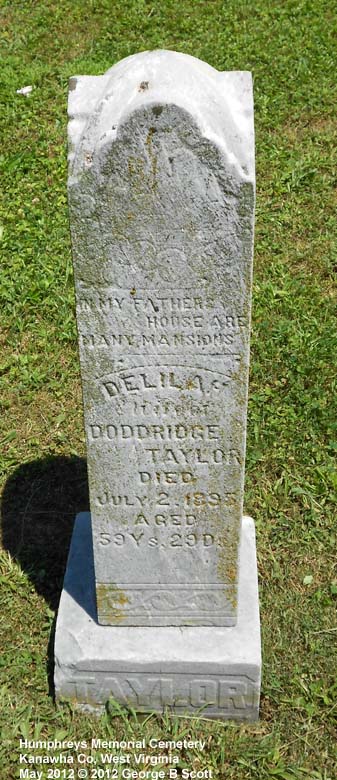 "Wife of DODDRIDGE TAYLOR" "AGED 59Ys 29Ds""IN MY FATHERS HOUSE ARE MANY MANSIONS" |