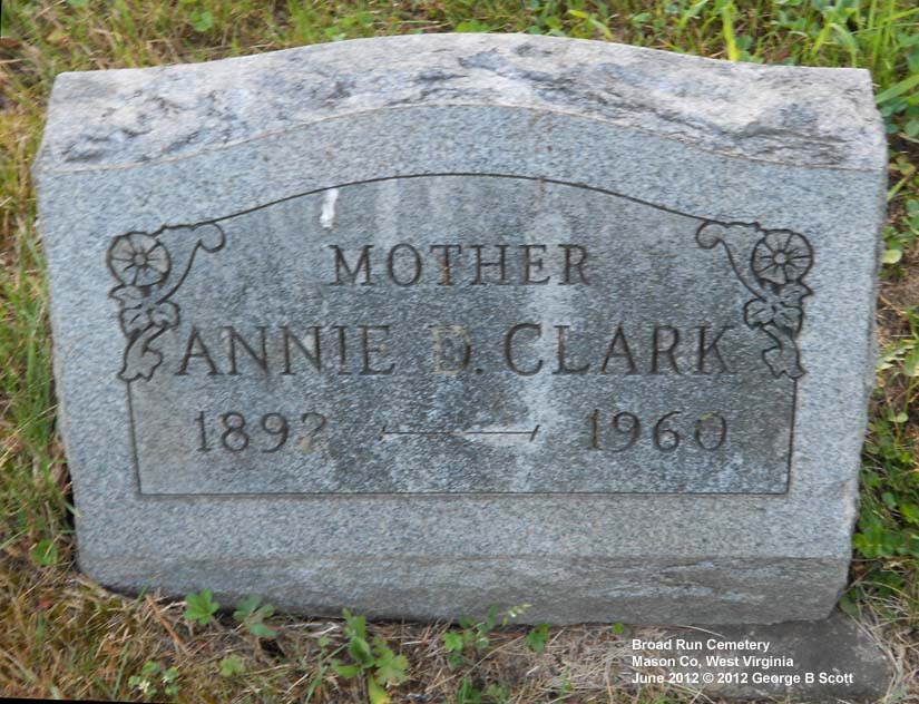[Spouse of Homer Clark, who was son of George Clark and Malinda Hoffman and grandson of Barbara Roush and Sampson Hoffman] |