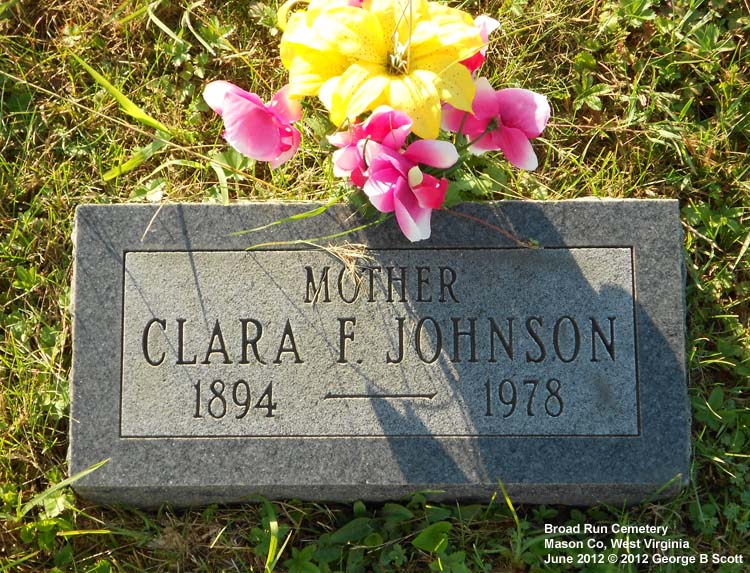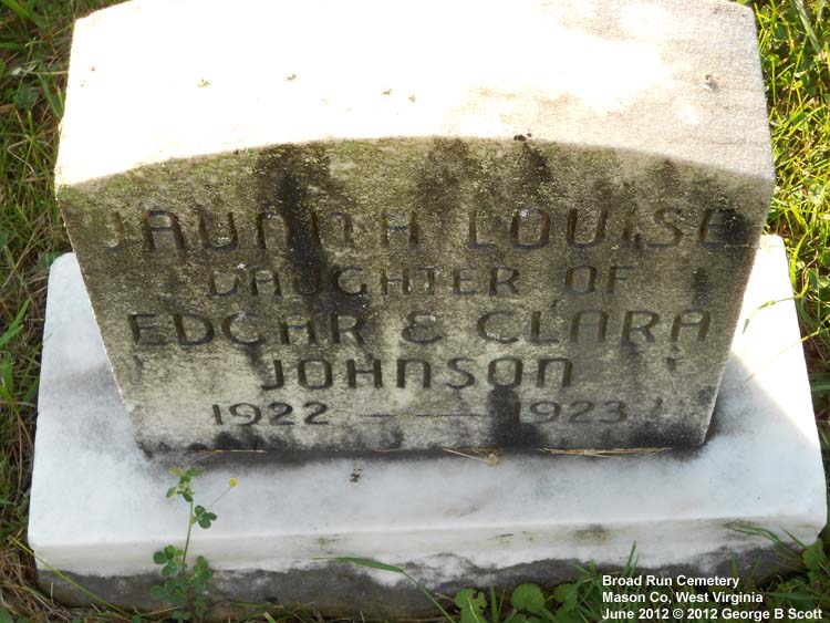 [surname mispelled on stone as Jaunita] "Daughter of Edgar & Clara Johnson" [gr-dau of James Hesson -Nancy Anne Roush] |