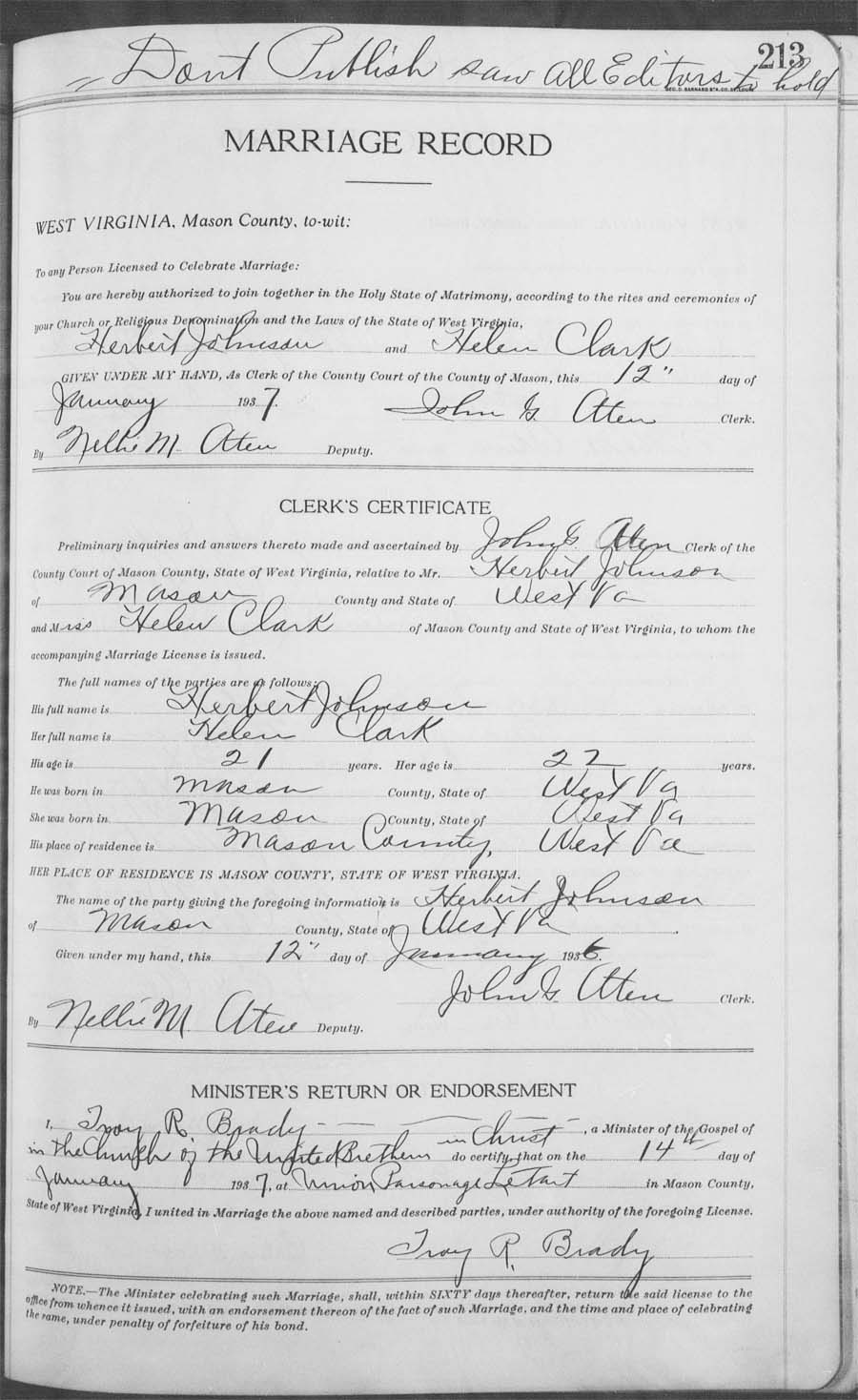 "DAD" "LOCAL 18" [Son of Homer Clark and Anna McCloud] |