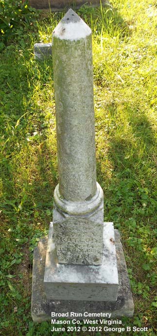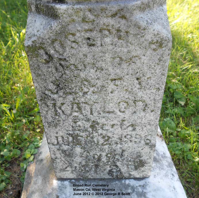 "Son of J and F V Kaylor" "Aged 4 M 8 D" [Was twin of John Kaylor, son of John O Kaylor & Frances V Grimm, gr-son of Mary Roush and Jacob Kaylor] |