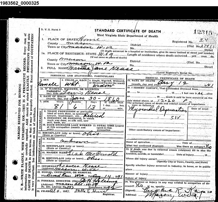 "SON" [Son of Ida Graham and Charles Powell, grn-son of Susan Goodnite and Jeremiah Graham, gr-grn-son of Delilah Roush and George Goodnite] |
