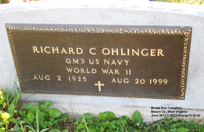 "GM3 US NAVY" "WORLD WAR II" [son of Elmer Ohlinger - Bessie Edwards, gr-son of Joseph Ohlinger and Louisa C Roush] |