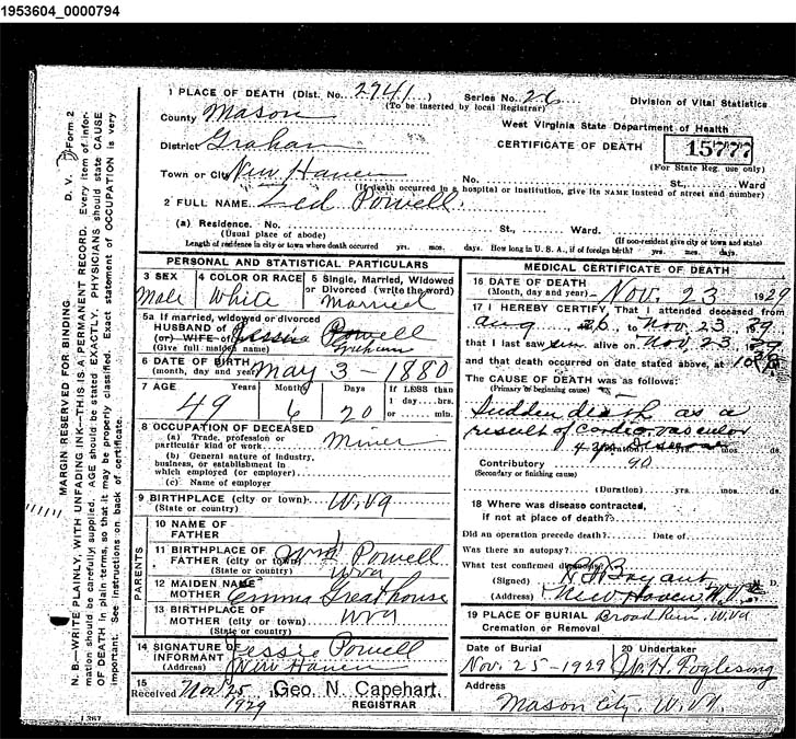 [son of Jessie Graham and Zed Powell, grn-son of Susan Goodnite and Jeremiah Graham, gr-grandson of Delilah Roush and George W Goodnite] |