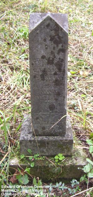 ds" "Wife of Thos. T. Fenimore" [Incorrectly listed in "Mason Co. Cemetery Inscriptions" as her sister Ann Eliza, who, according later research in "The Descendants of Edward Greenlee", died when she was only 3 years old] |