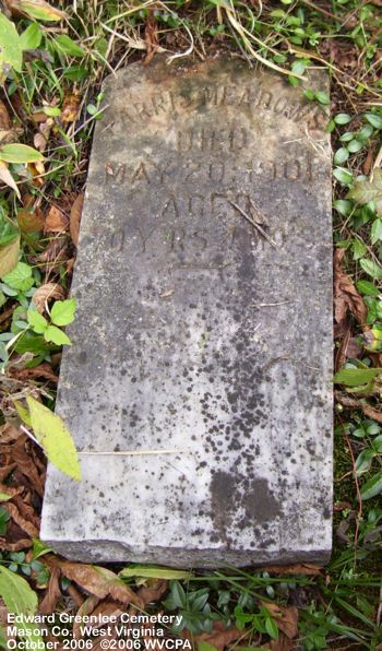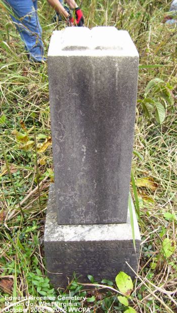 of M. & E. Greenlee" "Aged 7Ys. 20Ds." [Rest of inscription illegible in photo] [Birth date according to Greenlee family researchers] |