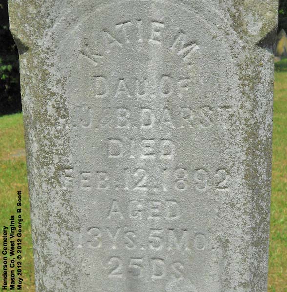 "DAU of H J & B DARST" "AGED 13 Ys 5 Mo 25 Ds" |