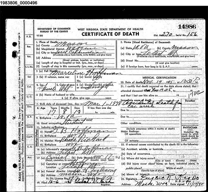 [Dau of Louis E Hoffman and Anna Rickard] |