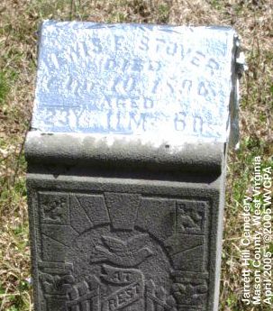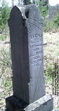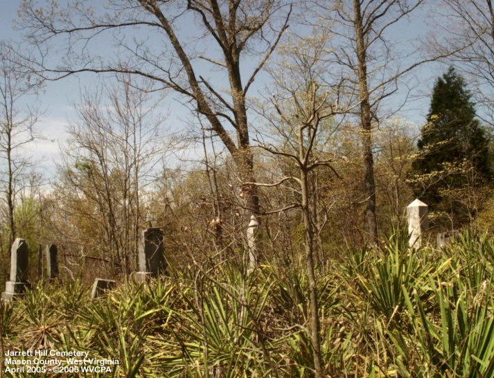 | Accessibility: | This cemetery is located east of Rockcastle Church about 1½ miles on a jeep trail/logging road midway between Long Hollow and Little Spruce. It lies just 30 feet or so off the road on the uphill side - not easily visible in its current overgrown state, but once easily visible from the road. The road is closed at Rockcastle Church on the west end, and just past a small farm on Little Spruce just into Mason County where the Jackson County line makes a sharp angle southwesterly. The hike from the east gate is somewhat easier, being less steep, but still takes a good half hour each way at a steady pace. The road from the east is passable for 4-wheelers. It is unknown how the roadbed conditions are from the west. | |