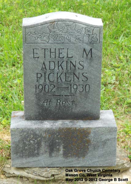"WIFE OF ALEXANDER ADKINS" "DAU OF VOLNEY and MARY GIBBS THOMPSON" |