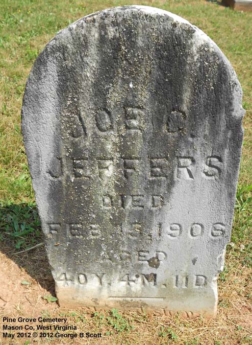 "Son of F. & R. Jeffers" "Aged 26Ys __Ms __Ds" [Inscription so hard to read that this is somewhat a guess that it belongs to Jacob] |