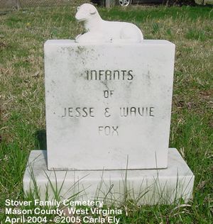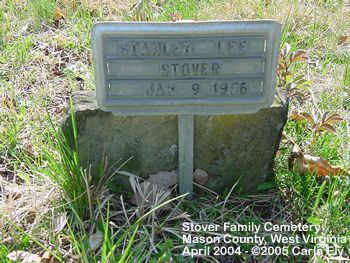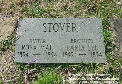 Dates or text in Red are not inscribed on the tombstone and have either been calculated based on death date or are as a result of research on the individual. The Stover cemetery is part of