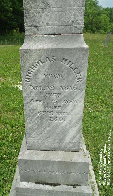 "WIFE OF NICHOLAS MILLER" [opposite side of stone] "AT REST FATHER AND MOTHER" [on back of stone] |