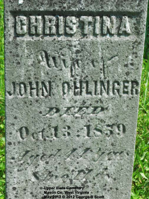 "WIFE OF JOHN OHLINGER" "Aged 44 Y 8 M 17 D" |