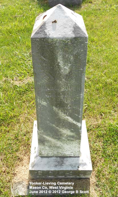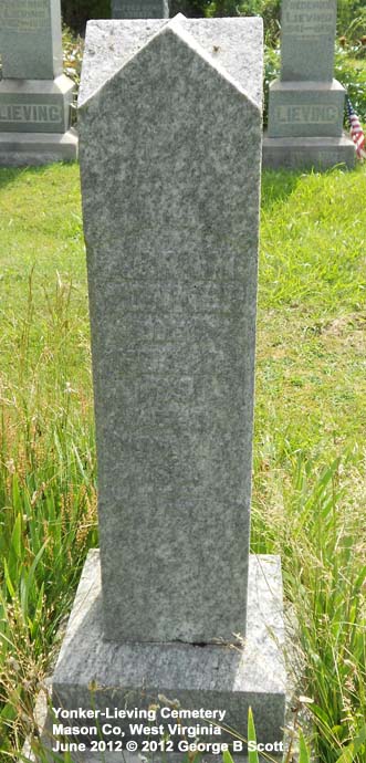 "WIFE OF ABRAM YONKER" IN MEMORY OF" "AGED 84 Y 9M 18D" |