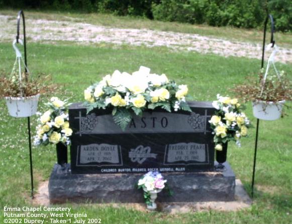 | Casto | Beatrice A. | 1922 | 12 November 2004 | [From her obituary in the Charleston Daily Mail Nov. 2004] | ||
