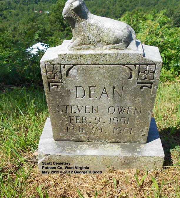 | Accessibility: | Steep hill to climb. From Red House, head northeast on WV 62 S Charleston Rd toward McClane Pike. After 0.5 mile, turn left onto WV 34N /McClane Pike and go 7.4 miles. Turn left (north) onto Co Route 34/7 (Scott Ridge Rd) and go 0.5 mile. Turn right onto Owens Rd and go about 200 ft. Cemetery is on north side of road on top of a hill. View is spectacular. | |