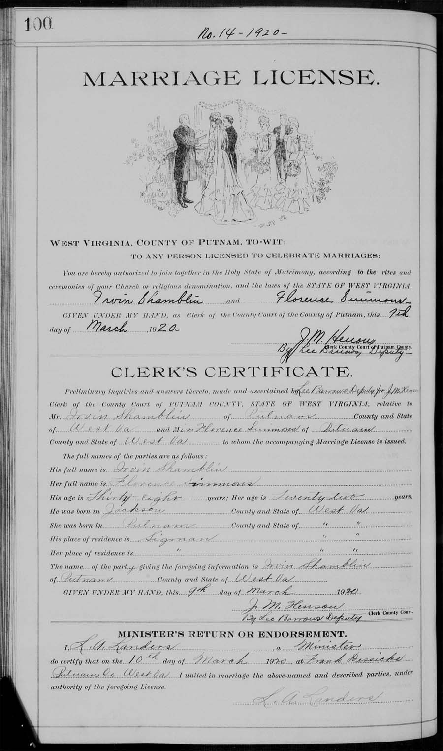 [married]"Aug 1, 1936" [Son of Champ Shamblin and Cora Silman] |