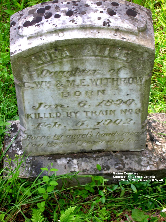 "Killed by Train No. 3" "Borne by an angel's hands away to a home of peace and love"